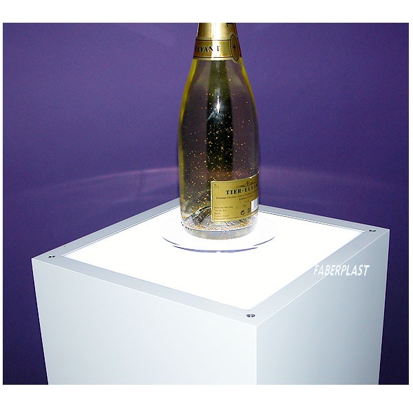 Formada por módulo de Foamapan Blanco (pvc espumado) y Urna de metacrilato transparente (plexiglas-pmma) con iluminación led, base con motor giratorio y puerta con cerradura.